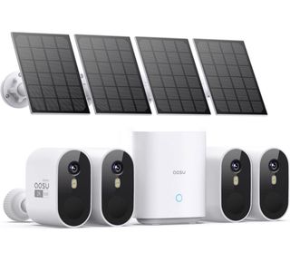 AOSU 2K Camara Vigilancia WiFi Exterior Solar, 4 Kit Camaras de Vigilancia sin Cables con Vista Ultra Ancha de 166°, Alimentación Permanente, Almacenamiento Local 32G, Sin Tarifa Mensual. 🔔conserva precinto.