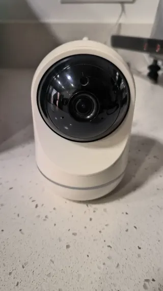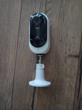 Cámara de seguridad blanca con soporte. - Diseño moderno y compacto. - Soporte ajustable para montaje. Se puede usar de modo inalámbrico No hago envíos.