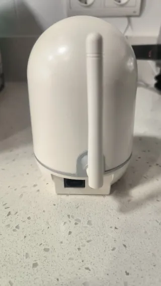Cámara de vigilancia con conectividad WiFi y visión nocturna. - Diseño compacto y moderno. - Antena para mejor recepción de señal. Solo venta en persona. Importante solo funciona con la banda 2,4GHDZ de wifi. No con router modernos. Y solo vale para vigilar un punto fijo como una cuna de un bebé , porque no gira La marca es prikim