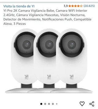 Cámara de vigilancia YI Pro 2K con conexión WiFi. 12€ una ud - Resolución 2K. - Visión nocturna. - Detector de movimiento. - Notificaciones push. - Compatible con Alexa.