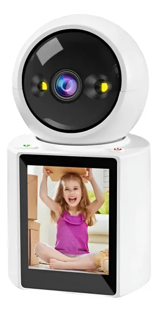 Protege lo que más importa con la Cámara de Seguridad 360° con Monitor Full HD 1080P, una solución avanzada y eficaz de vigilancia interior inalámbrica. Ideal para hogares, oficinas o negocios, esta cámara combina tecnología de alta definición, visión nocturna, detección de movimiento, y audio bidireccional, todo en un diseño compacto y fácil de instalar. Características: - Resolución Full HD 1080P - Visión nocturna infrarroja (hasta 10 m) - Seguimiento de movimiento inteligente - Audio bidireccional (intercomunicador de voz) - Almacenamiento en tarjeta TF - Ideal para interiores (no resistente al agua) - Compatible con smartphone