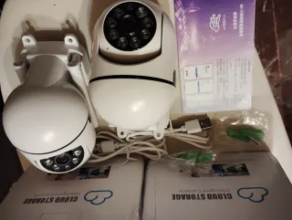 Se venden dos cámaras de seguridad inteligentes con almacenamiento en la nube. Resolución 1080p. Vista completa 360" Conectividad Wifi. Aplicación por teléfono. - Diseño moderno y compacto. - Ideales para vigilancia IP.