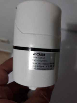 Cámara de seguridad ZOSI modelo ZG26120. - Voltaje de entrada: DC 12V. - Corriente: 500mA. - Fabricada en China.