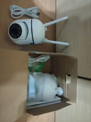 Se venden dos cámaras de vigilancia WiFi, ideales para monitorear tu hogar o negocio. Incluyen todo lo necesario para su instalación. - Cámaras con diseño moderno y antenas para mejor señal. - Incluye cableado y manual de usuario.