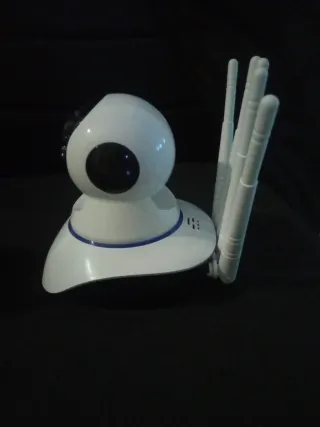Cámara de vigilancia con diseño moderno y múltiples antenas para una mejor conexión. - Color blanco. - Base giratoria. - Lente con visión nocturna.