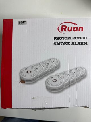 Pack de diez alarmas de humo photoelectric de la marca Ruan. Diseñadas para detectar humo de forma eficiente. - Pack de 10 unidades. - Modelo: Photoelectric Smoke Alarm.