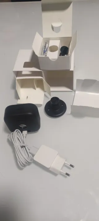 Camara de seguridad Arlo Essential Indoor 2a generación en color blanco y negro, con su base y transformador. Hay mas unidades disponibles. Se hace precio para un pack.