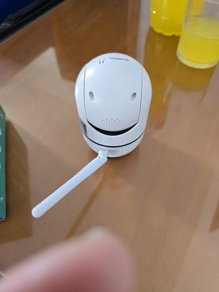 Cámara de vigilancia dos lentes inteligente, prácticamente nueva. Incluye: - 1 cámara de vigilancia con dos antenas WiFi. - 1 cable USB.