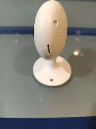 Cámara de videovigilancia. - Diseño compacto y moderno. - Indicadores LED visibles. - Puerto de conexión en la base. conecta a wifi tiene para tarjeta de memoria, se baja la aplicación se ve en el móvil y visión nocturna. Puedes conectar a una nube con suscripción y más cosas.