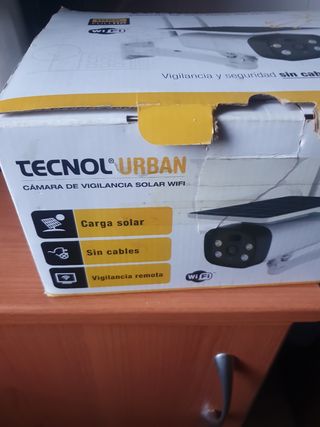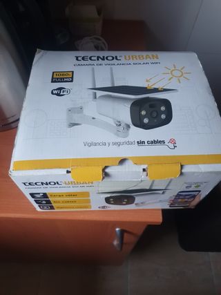 Cámara de vigilancia TECNOL URBAN, con panel solar, para una vigilancia inalámbrica. Está en su caja original y parece en buen estado. - Cámara de vigilancia solar WiFi. - 1080p Full HD. - Incluye soporte de pared.