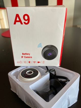 Cámara WiFi Discreta - Color: Negro. - FCC ID: 2BQ46-A9. - Voltaje de entrada: 5V. - Potencia de salida: 1.8W. - Fabricado en China. -Tiene para poner SD -Inhalámbrica, carga con cable ( cable incluído) -soporte para colocarla incluído Está nueva x estrenar. Me tardó mucho en llegar, me compré otra. Funciona con la instalacion de una app que indica en las instrucciones.