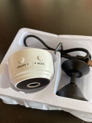 Camara muy pequeña de vigilancia, para ponerla donde uno quiera y tener control visual y de audio a su telefono mobil. Funciona por wifi, tambien toma fotos y videos. Se carga por usb. Lleva soporte con iman y se pega para ponerla donde desees. Nueva a estrenar.