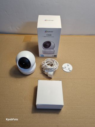 Cámara de seguridad inteligente EZVIZ C6N, Cámara de Vigilancia WiFi 360º, puede usarse como vigila Bebe/Mascotas, Visión Nocturna, Audio Bidireccional, Detección de Movimiento, Control Remoto (app mobil) Compatible con Alexa, Andriod/iOS, se encuentra en su caja original y esta en muy buen estado. - Resolución Full HD 1080p. - Compatible con App EZVIZ (iOS y Android). - Diseño compacto y moderno. - Ideal para vigilancia del hogar.