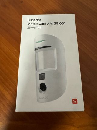 Cámara de seguridad Ajax MotionCam AM con tecnología PhOD y antimasking. - Diseño elegante en color blanco. - Indicador LED verde superior. - Detector con foto bajo demanda - Grado 2 y ANTIMASKING - Ajax Superior / Soporte con tornillo de fijación - Resolución HD / Tecnología HDR - Rango de detección 12 m