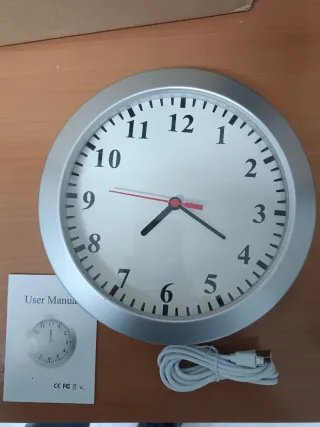 Este reloj de pared blanco tiene una cámara oculta integrada. Usado muy poco, con su embalaje e instrucciones. Graba en tarjeta ssd. No incluida.