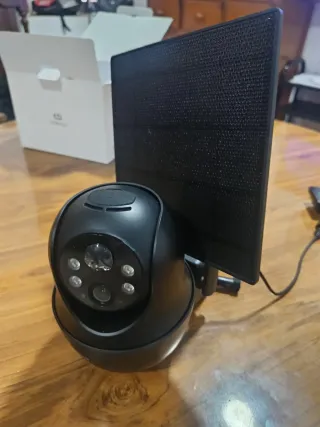 Cámara de vigilancia con panel solar y conexión Wi-Fi. - Resolución 1080p. - Alimentación por batería y panel solar. - Conexión inalámbrica Wi-Fi 2.4GHz.