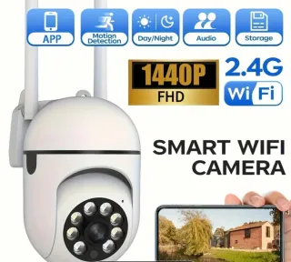 Se venden dos cámaras de seguridad inalámbricas en color blanco. Son ideales para vigilar tu hogar. - Diseño moderno y compacto. - Antenas para mejor conexión. - Base estable para colocar en superficies. JOOAN Cámara de seguridad al aire libre 2K WiFi con cable 360 ° PTZ IP Cam seguridad para el hogar vigilancia patio garaje etc