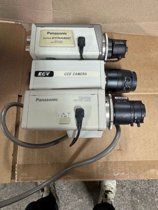 Se venden tres cámaras de seguridad, dos de la marca Panasonic y una de la marca ECV. - Modelo Panasonic WV-CP450 SUPER DYNAMIC. - Modelo ECV CCD CAMERA. - Modelo Panasonic WV-BP120. - parecen de calidad y en buen estado. Tienen zoom óptico. - No las he probado, parecen en buen estado pero no puedo asegurar que funcionen. Por tanto se venden como averiadas.