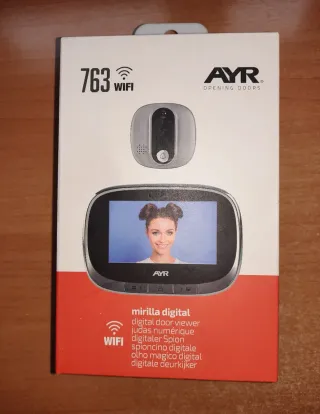 Mirilla digital de la marca AYR. Permite ver quién está al otro lado de la puerta. - Pantalla a color. - Diseño moderno y compacto. - Fácil instalación.