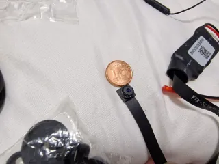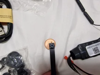Pequeña cámara espía con un diseño discreto. - Lente de cámara diminuta. - Cinta flexible para conexión. - botones para enmasacarar la lente Puede que la bateria hay que reemplazara.