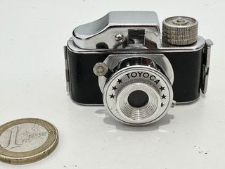 Mini camara Hit fotografica Toyoca de 1950. Formato de pelicula 17,5 mm Con funda de cuero. Nueva a estrenar en perfecto estado, tanto la cámara como la funda. Aun se conserva el packaging.