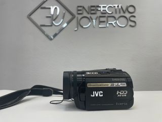 Videocámara JVC HD en color negro y plateado, perfecta para capturar tus momentos especiales. Incluye su funda protectora, bateria y su cargador. Usada poquísimo. - Diseño compacto y ligero. - Incluye funda JVC. - Cargador de corriente.