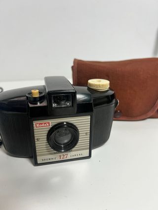 Cámara fotográfica Kodak Brownie 127, un clásico para coleccionistas. - Diseño retro en color negro. - Incluye funda de transporte en color marrón. 21