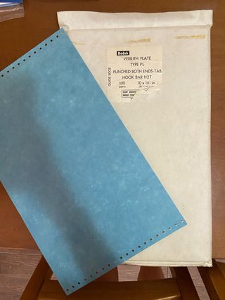 Placas Verilith de Kodak, tipo PL - (Dice 100 hojas pero quedan 17) -10 x 16 pulgadas (25.4 x 42.1 cm). - Perforadas en ambos extremos con pestaña. - Barra de gancho H2T.