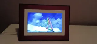 Marco de fotos digital con un diseño moderno. - Pantalla a color. - Marco exterior de color burdeos. Se regala cargador y tarjeta de memoria