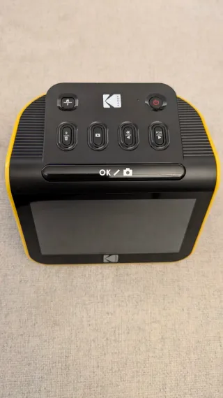 Escáner de negativos Kodak, ideal para digitalizar tus carretes. - Diseño moderno en color negro y amarillo. - Pantalla integrada para previsualización. - Botones de control accesibles en la parte superior. Lo vendo porque tengo acceso a un escáner profesional. Está impecable, nuevo. Viene en su caja con manual y todo.