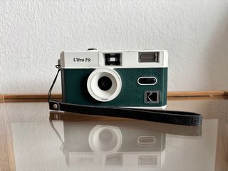 Cámara de película Kodak Ultra F9 en color verde y blanco. Un diseño clásico para capturar tus momentos. - Lente de 31mm. - Flash integrado.