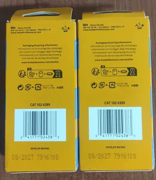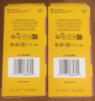 Se venden dos tripacks de película fotográfica Kodak Ultramax. - Cada tripack contiene 3 carretes. - Cada carrete es de 36 exposiciones. - Película para color prints. Fecha de caducidad: 08/2027
