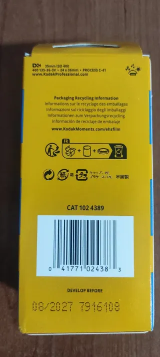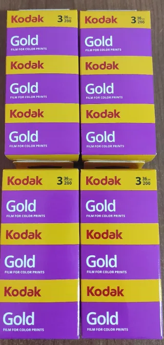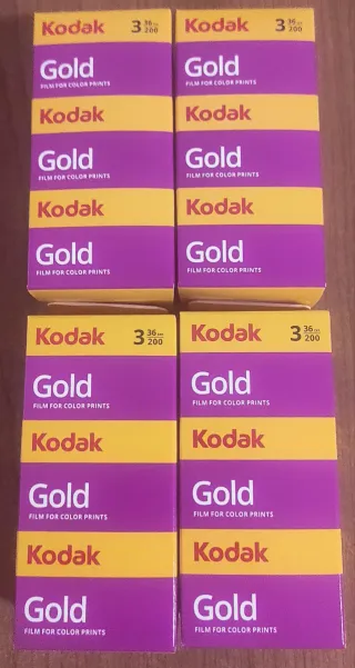 Lote de 10 carretes de película fotográfica Kodak Gold. - ISO 200. - 24 exposiciones por carrete. ## OJO ## FECHA DE CADUCIDAD: 03/2025