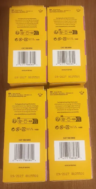 ¡Hola! Vendo cuatro cámaras desechables Kodak FunSaver 39F. Están nuevas y sin abrir. - Modelo: Kodak FunSaver 39F. - Cantidad: 4 unidades. - Fecha de caducidad: 08/2026.