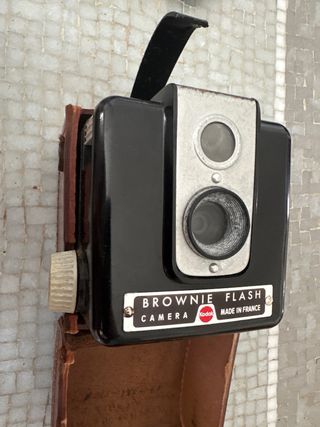 Cámara fotográfica clásica Kodak Brownie Flash. - Modelo: Brownie Flash - Fabricada en Francia - Incluye funda de cuero marrón