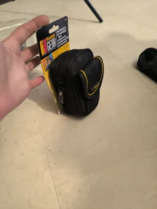 Funda protectora para cámara compacta Kodak. - Color negro con detalles amarillos. - Cierre de cremallera. - Logo de Kodak Gear visible.