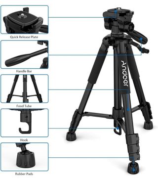 Vendo tripode Andoer sin caja original pero nunca lo he llegado a usar incluye un soporte para smartphone ver última imagen Especificaciones: Longitud plegada: 480 mm Altura sin eje central: 1215 mm Capacidad de carga máxima: 3 kg Número de secciones de pierna: 4 Material: aleación de aluminio y ABS. Altura máxima: 1465 mm / min. Altura: 455 mm / 17,9 pulgadas Max. Diámetro de la tubería: 23 mm / diámetro de la tubería de mezcla: 14 mm