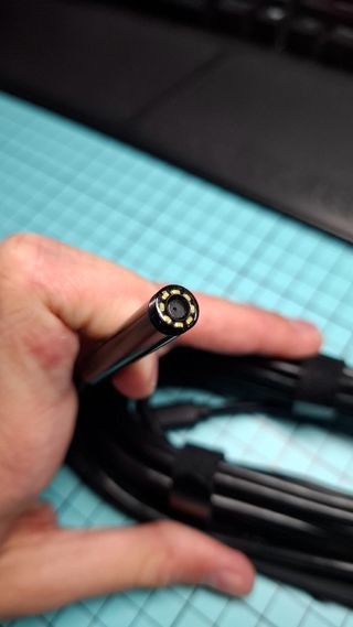Cable endoscopio con conexión USB-C. Incluye varios accesorios para diferentes usos. Verificar tuberías, atascos, mecánica y demás sitios inaccesibles. - Cable flexible y duradero. - Cabezal de cámara con iluminación LED. - Adaptadores para micro USB y Lightning. - Compatible Android e iPhone - Accesorios: gancho, imán y espejo lateral.