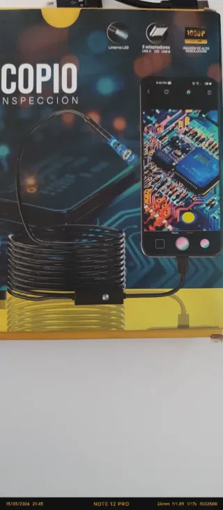 Cámara endoscópica por cable, NUEVA sin usar. Conector USB y adaptador USB‐C, luz LED regulable en la punta. Ideal para inspeccionar tuberías, motores, huecos pequeños, bricolaje, etc. Longitud del cable: [indica metros]. Resolución: [si la sabes, pon 720p/1080p/etc]. Entrega en mano. Envío por Wallapop disponible. Dudas u ofertas razonables, escríbeme.