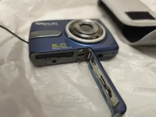 Cámara Digital Compacta de 8.0 megapixel, pantalla de 2,36 pulgadas TFT, 3x zoom óptico y 4x zoom digital. Grabación de audio y video ilimitada. Memoria interna de 32MG. Soporta tarjeta FLASH de memoria de hasta 4GB incluida. Incluye manual sin usar, cd con instrucciones, cable USB, tarjeta de memoria, correa y funda para guardarla. Viene en su caja original. Usada en una ocasión y se guardó. En perfectas condiciones. Se manda video sin compromiso para comprobar que funcione.