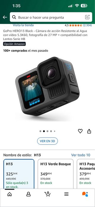 ⛔️falta la batería ⛔️ Cámara de acción GoPro HERO13 Black resistente al agua. - Vídeo 5.3K60. - Fotografía de 27 MP. - Compatible con Lentes Serie HB.