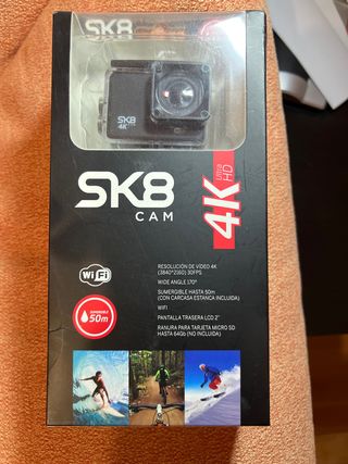 Cámara deportiva SK8 con resolución 4K Ultra HD y conectividad WiFi. Ideal para capturar tus aventuras. - Resolución de vídeo 4K (3840*2160) a 30FPS. - Ángulo de visión amplio de 170°. - Sumergible hasta 50m con carcasa estanca incluida. - Pantalla trasera LCD de 2. - Ranura para tarjeta Micro SD de hasta 64GB (no incluida). Entrega en mano. Esta nueva, sin estrenar.