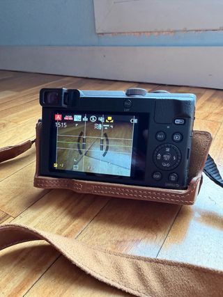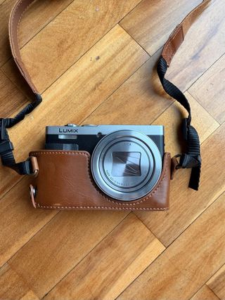 Cámara compacta Panasonic Lumix DMC-TZ70 en color negro y plata. Incluye funda de cuero marrón y 2 baterías. Funciona perfectamente. No tiene daños físicos. Ha sido muy bien cuidada. Vendo por falta de uso.
