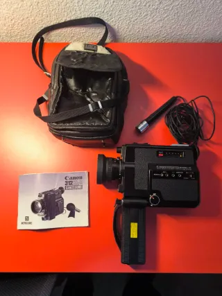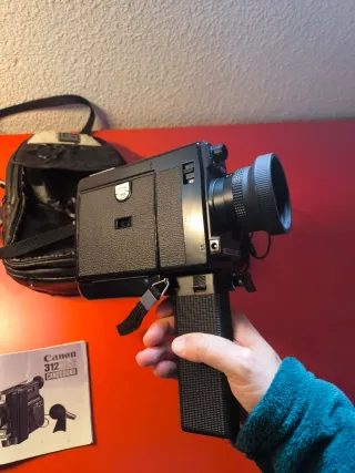 Cámara de cine Super 8 Canon 312XLS Canosound. - Incluye micrófono. - Incluye bolso de transporte. - Incluye manual de instrucciones. -Falta el cable para cargarla (requiere un transformador de 9 voltios). Por este motivo, no he podido testearla recientemente, aunque la última vez que se usó funcionaba perfectamente.