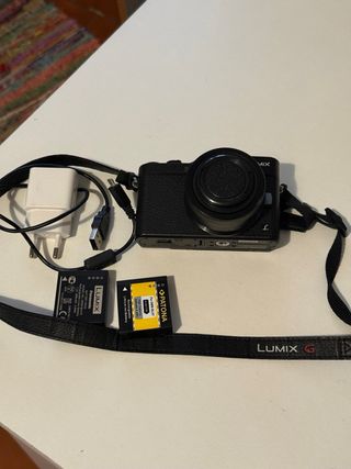 Cámara mirrorless Panasonic Lumix GX800 sensor y montura micro 4/3 en color negro. En perfecto estado, con apenas mas de 1000 disparos. Es muy compacta por lo que es perfecta para fotografía callejera y de viajes. - Lente de kit con estabilizador de imagen G Vario 12-32mm f1:3.5-5.6 - Dos baterías, una original y otra Patona. - Correa original - Cable de carga y datos. - Cargador para la cámara. Lumix Olympus Micro43 4/3 MFT Panasonic GX800 GX850