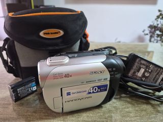 Cámara de video Sony Handycam con lente Carl Zeiss Funciona todo a la perfección, solo le falta la bateria que esta en mal estado - Zoom óptico 40x. - Incluye cargador y batería. - Incluye bolso de transporte Pro-Bag.