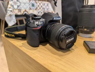 Se vende cámara réflex digital Nikon D3200 con dos objetivos. - Cuerpo de cámara Nikon D3200. - Objetivo Nikon AF-S DX NIKKOR 18-55mm f/3.5-5.6G VR. - Objetivo Nikon AF-S DX NIKKOR 55-200mm f/4-5.6G ED VR. - Bolsa de transporte objetivo. - Cargador de batería Nikon MH-24. - Dos baterías (una original Nikon EN-EL14 y una compatible Mondpalast). - Tapa de objetivo y parasol.