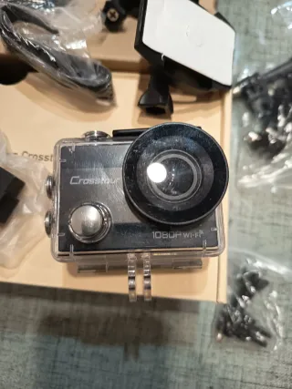 Cámara deportiva Crosstour con resolución 1080P y conectividad Wi-Fi. Ideal para capturar tus aventuras. - Color plateado y negro. - Incluye accesorios de montaje.