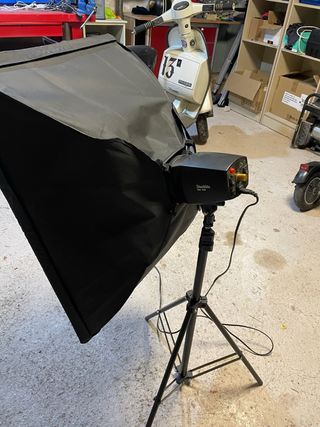 Kit de iluminación continua para foto y video. - Softbox de gran tamaño. - Pie de soporte ajustable. - Cabezal de flash Starblitz.