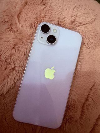 Teléfono móvil iPhone 14 en un bonito color morado. - Diseño elegante y moderno. - Acabado brillante. - Cámara dual. Salud de batira 78% No tiene caja